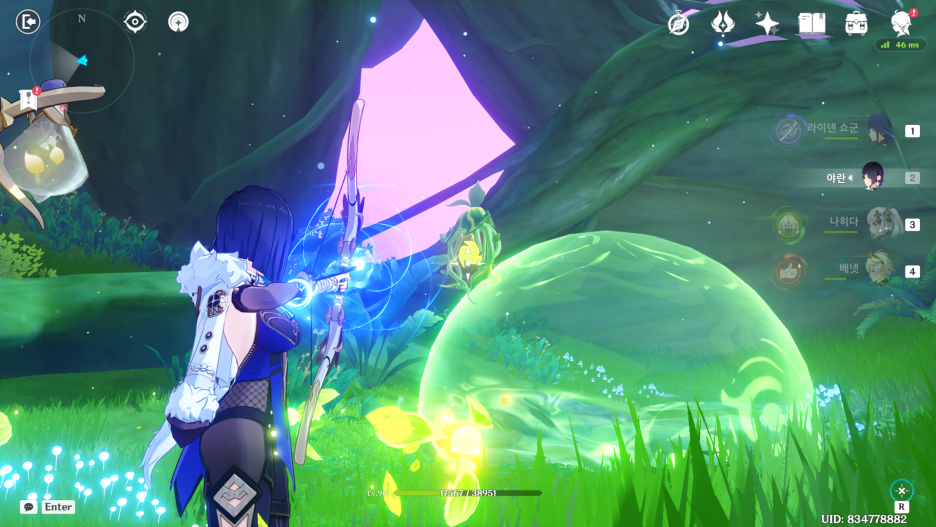 이를 이용해 방금 했던 것처럼 활캐를 활용하여 풀 원소 과녁에 풀 씨앗을 쏴주도록 합시다.