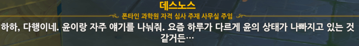 별 소득이 없었던 <윤>은 <슈아죌>의 말대로 여행자의 에스코트를 받으며 폰타인 과학원 주변 사진을 찍기로 한다.