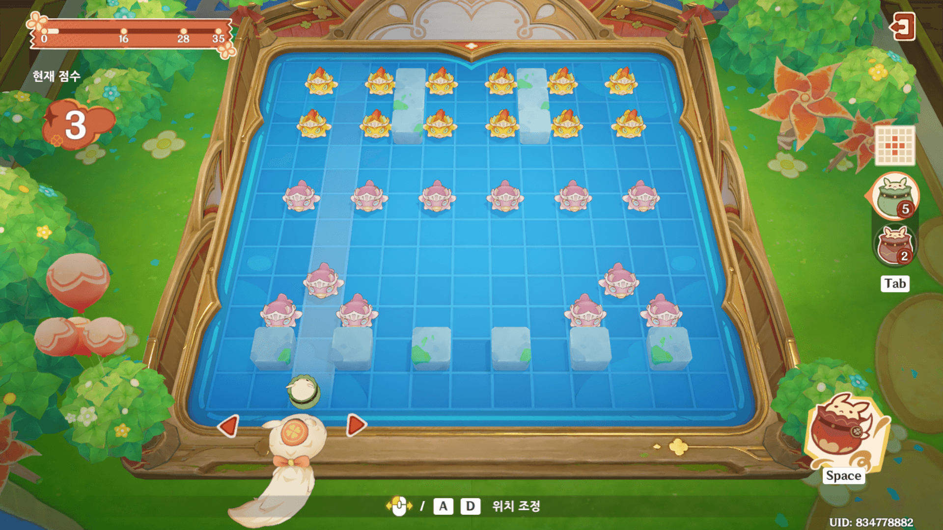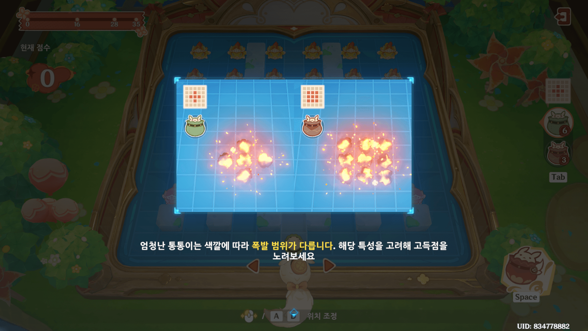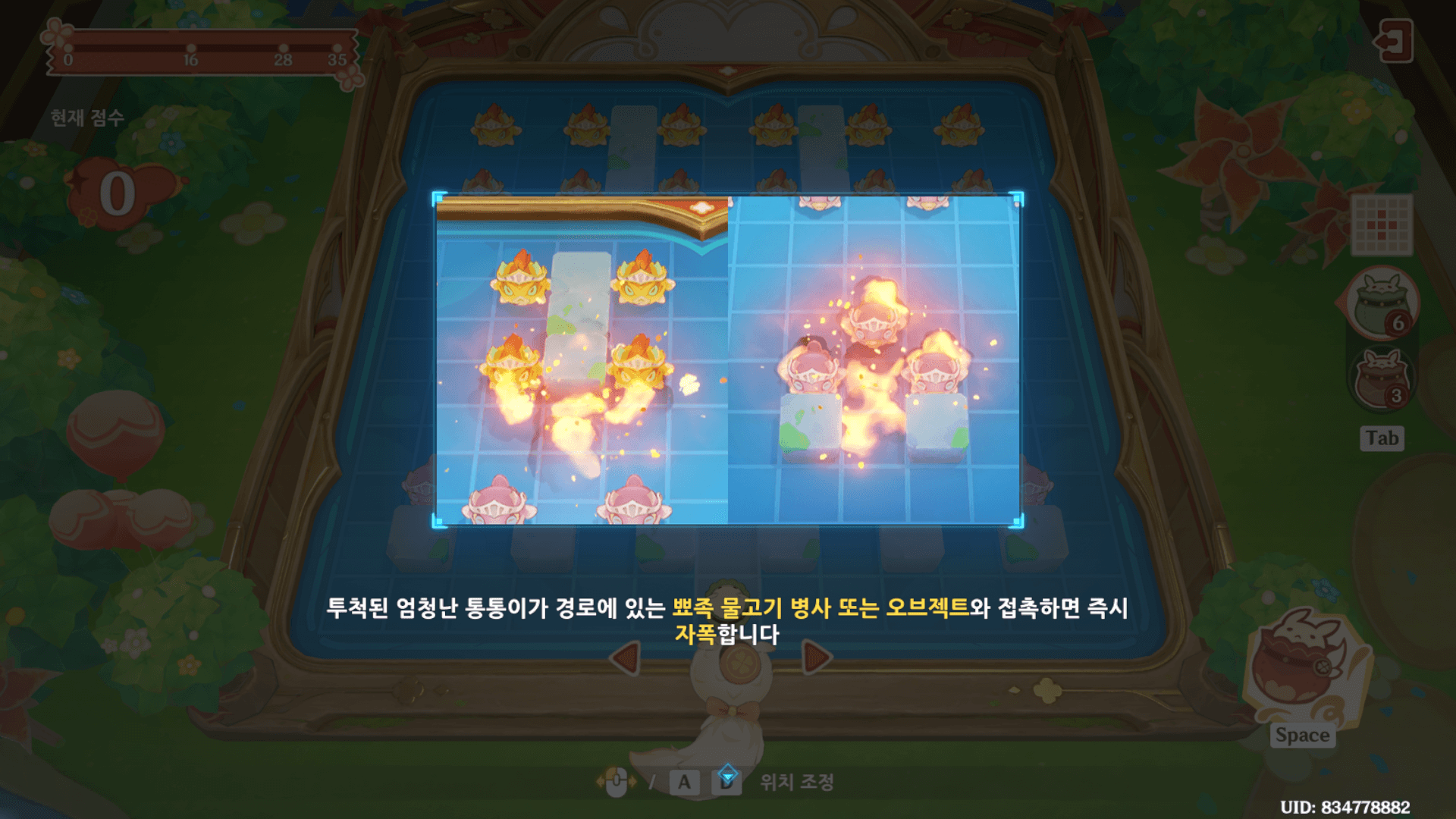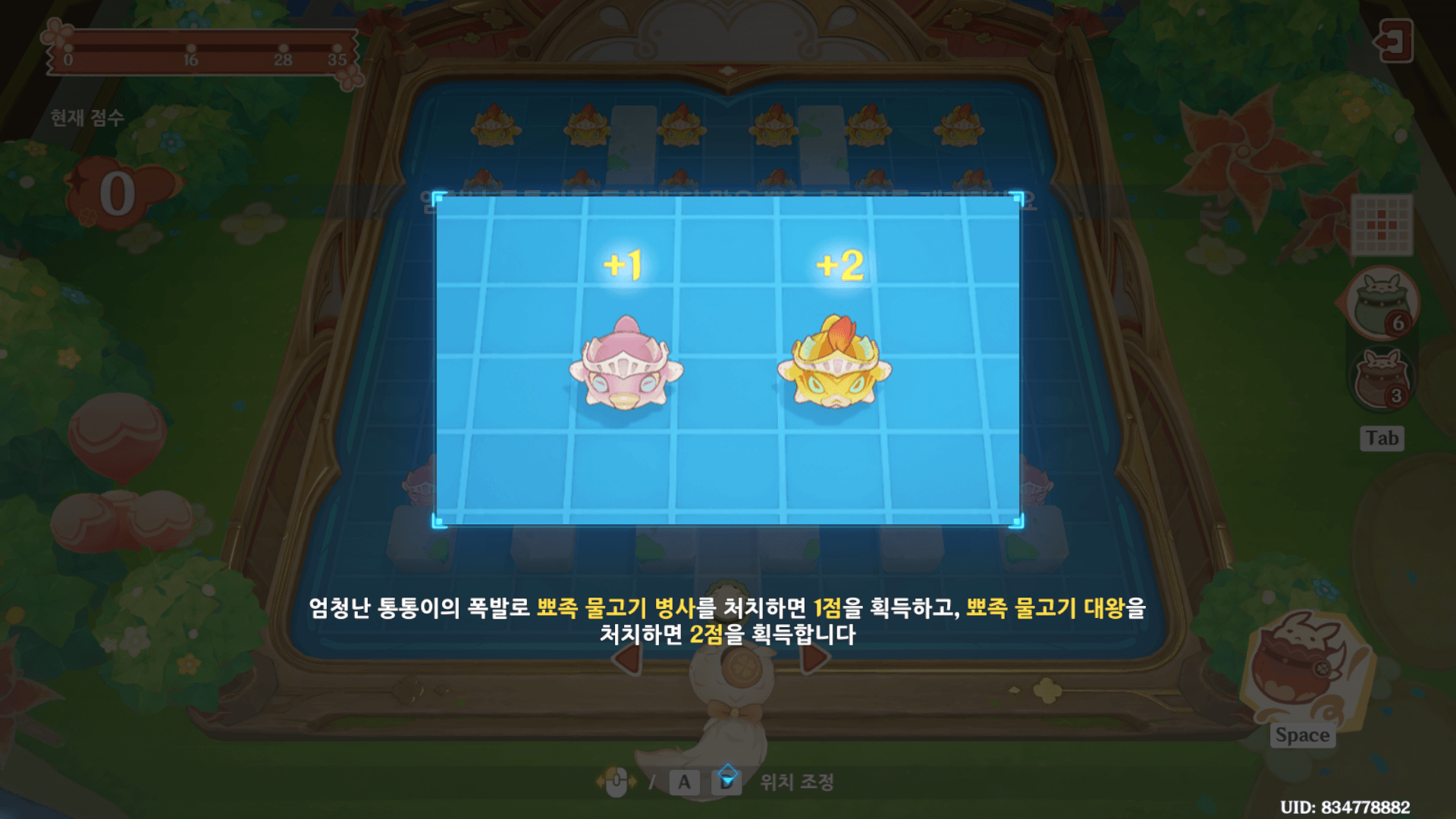 각 폭탄의 터지는 범위를 파악한 뒤에 어떻게 해야 모든 물고기 병사들을 처리할 수 있을지 설계를 해놓은 뒤에 하는 것을 추천한다.